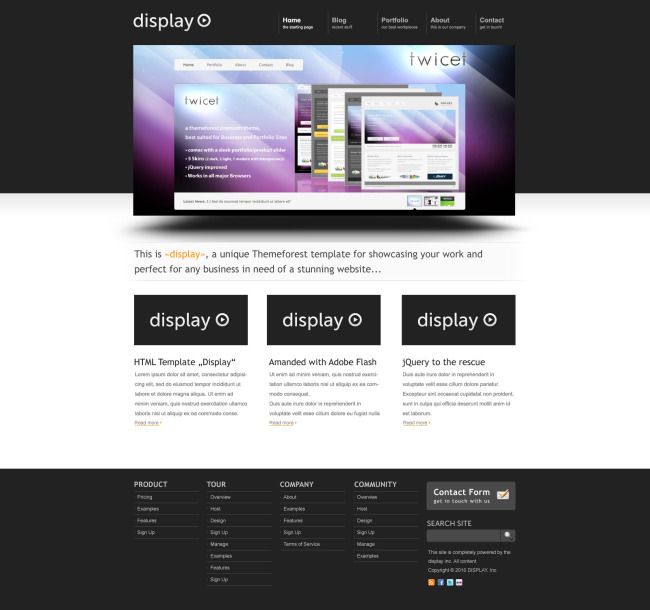 黑色简约扁平化布局的国外个人博客PSD模板,个人网站模板,1600*1500分辨率。导航依然放在整个页面的顶部,中间的banner很有个性,和黑色背景的错位以及自身的投影,给人banner犹如凸出来的感觉,主体为三列布局。 黑色简约个人博客PSD模板