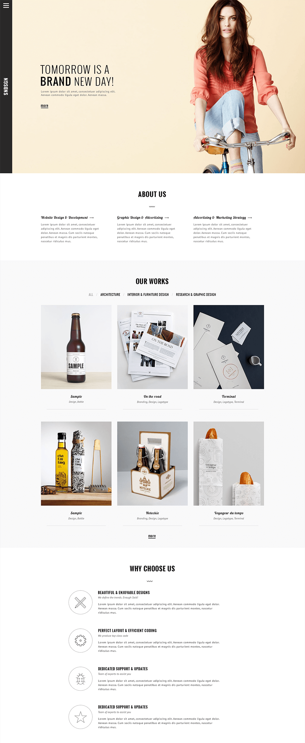 高端大气的商标设计公司网站PSD模板 来源:未知 作者: 语言:英文 颜色:黑色 大小: 9MB 点击次数: 发布时间:2016-07-26 13:19:47 去下载 非常高端大气的广告商标设计公司的网站PSD模板,导航个性的放在了侧边栏,页面用到的特殊字体,也提供在了下载的压缩包里面,解压,font文件夹里面的就是了。由于页面太长,上面的大图被切成了两部分,实际上是一张图。 TAGS: 高端 大气 的 商标 设计公司 网站 PSD 模板 下载 上一篇: 黛蓝色企业网站PSD模板 下一篇: 平面和网页设计公司网站PSD模板