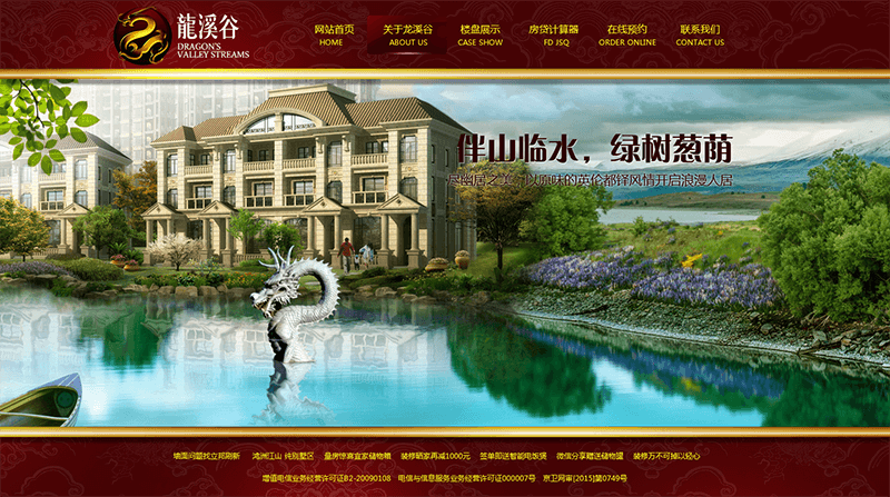 龙溪谷房地产网站PSD模板 来源:未知 作者: 语言:中文简体 颜色:暗红色 大小: 20MB 点击次数: 发布时间:2016-11-08 17:28:56 去下载 龙溪谷房地产网站PSD模板是由我爱模板网设计的,画面以暗红色+金色为主,呼应logo的色调,同时显得华丽大气,辅以中国风的祥云作为背景图案。banner青山+绿水+别墅,环境优美,居家舒适。水中石雕龙也呼应了logo的龙溪谷。 TAGS: 龙溪谷 龙 溪谷 房地产 网站 PSD 模板 龙溪谷 下载 上一篇: 黄色淋浴房生产企业网站PSD模板 下一篇: 大气企业管理咨询公司PSD网站模板