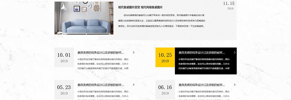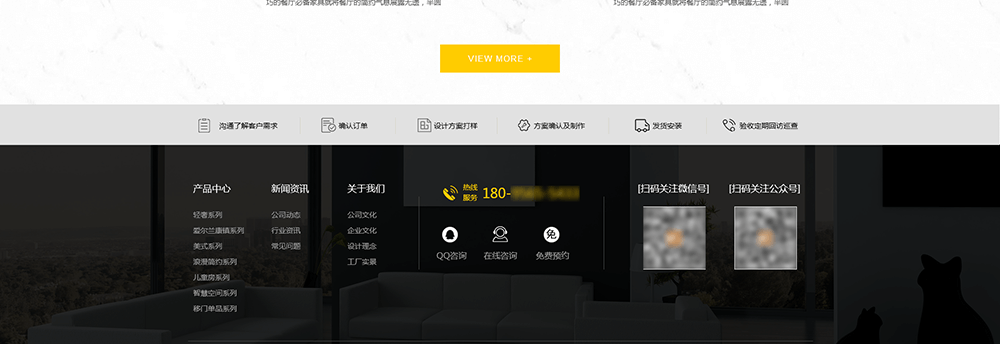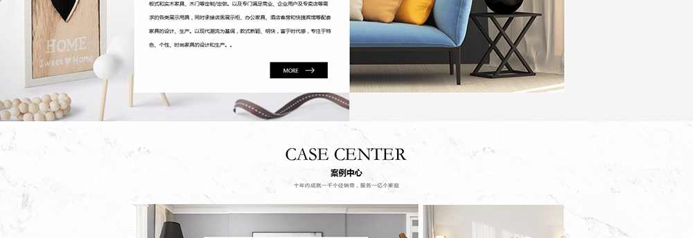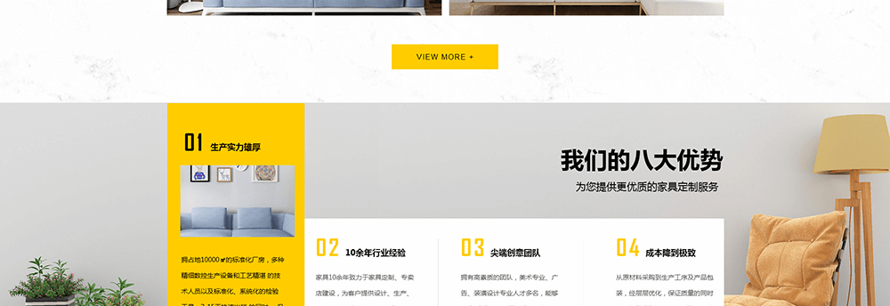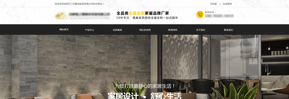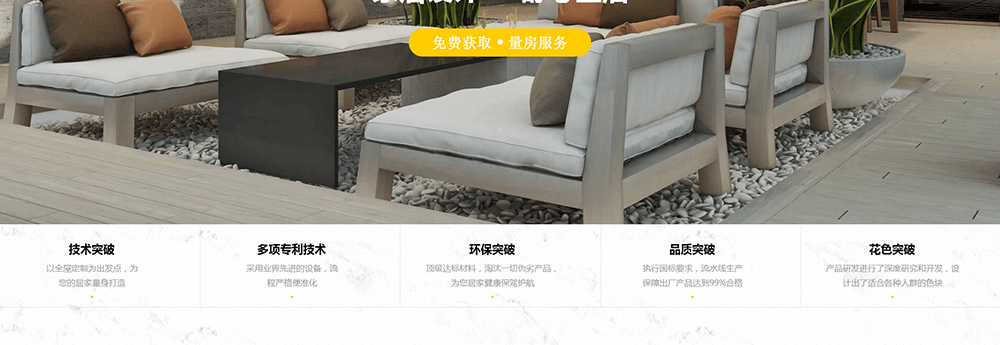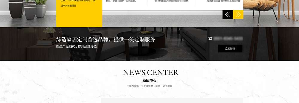 非常大气,非常精美的全屋定制公司网站首页PSD模板。1920*6610分辨率。整幅画面都是瓷砖花纹作为背景,banner图也是全屏+文字描述+按钮,可以采用基于Nivoslider.js图片轮播插件来做,切换效果更好。banner底部是五个企业优势的描述。优势下面是推荐产品列表,采用横向tab选项卡+图片列表的模式。再下面是案例中心,图片错位排列,效果不错。再下面是八大优势,但是一次性只展示四个,右下角有左右滑动按钮,默认每个条目显示标题和简介,鼠标浮动上去展开详细介绍以及图片。背景为全屏的装潢效果图。再下面的新闻中心设计的也别具一格,头条推荐占了整屏,下面是时间+标题+描述的四条新闻。底部版权以及版权上的定制流程也个性十足。