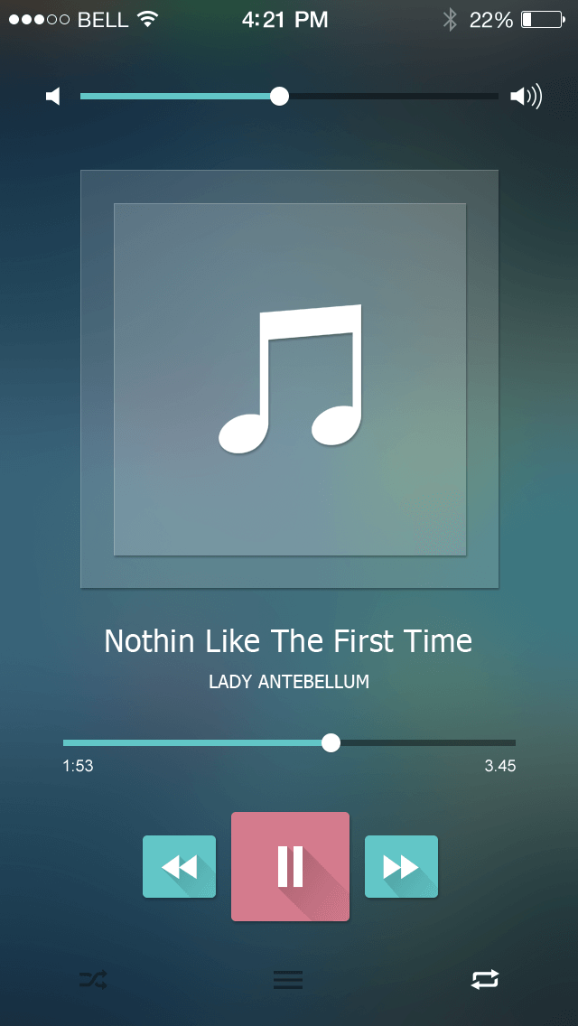 非常漂亮的音乐播放器PSD分层模板 来源:未知 作者: 语言:英文 颜色:蓝色 大小: 1000KB 点击次数: 发布时间:2018-02-07 17:46:40 去下载 这是一款非常漂亮的扁平化音乐播放器UI界面PSD模板,高斯模糊的大背景,在做成播放器的时候,可以考虑将专辑图显示在大背景当中,并且高斯模糊,我爱模板网根据这个效果,已经实现了,点击访问:非常漂亮的音乐播放器html模板。中间的音乐图标可以做成专辑图的效果。按钮长投影和投影以及高光,以及专辑图的半透明白色背景、高光和投影,让播放器立体感十足。 TAGS: 音乐播放器PSD 下载 上一篇: 第一页 下一篇: 精美的立体+磨砂玻璃效果登录界面PSD模板