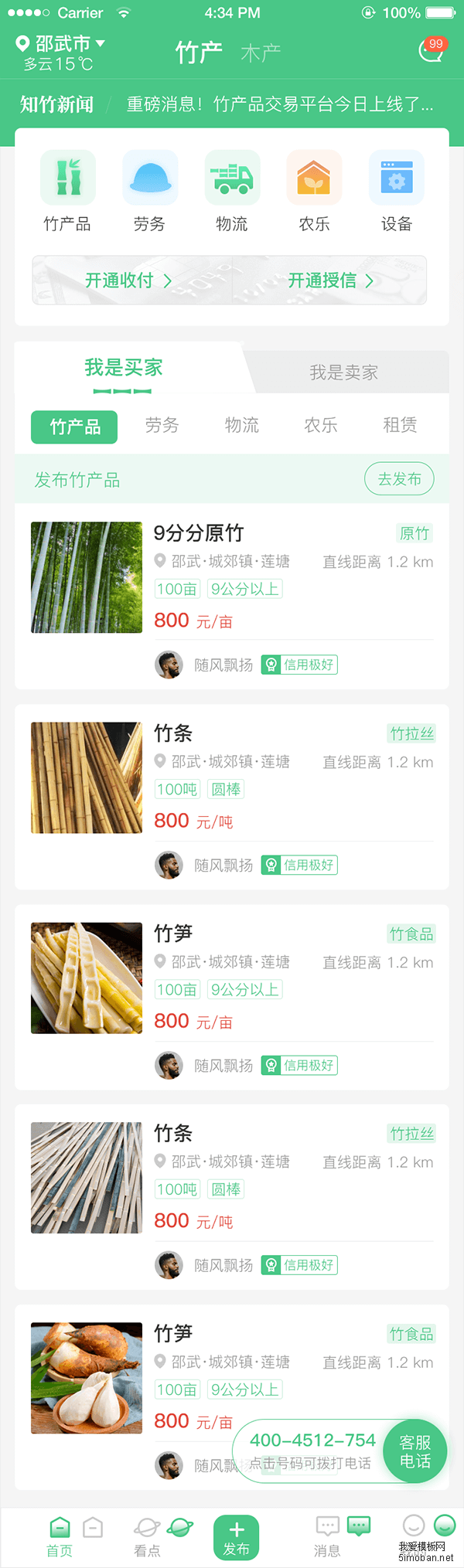 知竹网APP是一款基于uni-app开发的,围绕竹产品及其周边的一款app,从砍伐、运输、制作、销售全环节,支持IOS和安卓双端。支持环信在线聊天功能和在线电子签约功能,商家或个人可以发布竹产品购买信息、竹产品销售信息、伐木工人找活信息、竹商发布物流信息和司机发布找货信息,当发布一款产品,自动创建此产品的群聊,并邀请物流、买家等加入此群聊。如果未认证,会自动进入认证环节,并签署电子签约。采用游客登录模式,不登录也能浏览大部分信息。支持指纹登录。