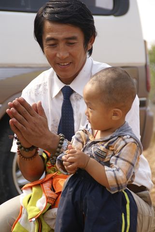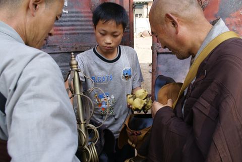 大悲寺小僧人禅坐于路旁