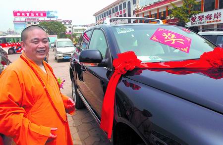 少林寺方丈释永信说:明年要拿更大的奖价值100多万的德国大众途锐:内饰豪华讲究,真皮桃木,方向盘可加热,无钥匙进入功能,四区域空调,后座上4个可独立精确调节的空调风口,分区空调可以营造车内的四季导航系统,指南针海拔仪和卫星定位等,越野时还能显示转向角电视接收器车顶上有7个照明灯,电动伸缩的挂车连接器......
