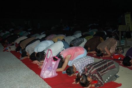 大悲寺前通宵拜忏的信众
