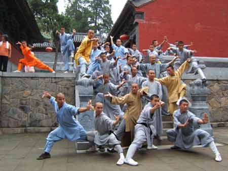 少林寺和尚为来寺旅游消遣的游客表演