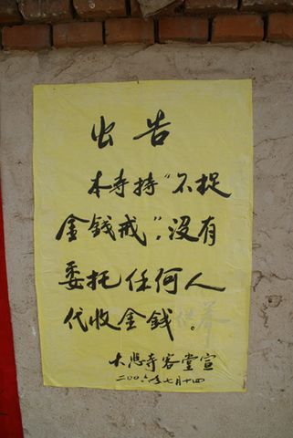 大悲寺僧众寺内寺外不接受任何金钱供养