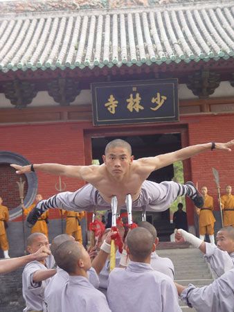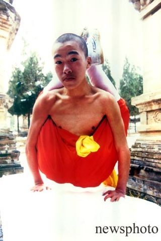 少林寺和尚在利器上练功