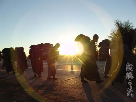 大悲寺僧人在朝霞下