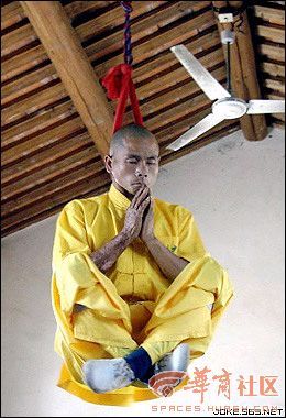 少林寺和尚在绳索下
