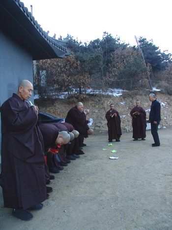 大悲寺内所有信众为僧人恭敬让路