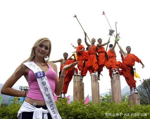少林寺和尚与87名国际旅游小姐合影