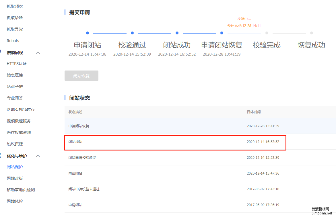 闭站保护忘了取消了 来源:未知 作者: 点击次数: 发布时间:2021-01-05 09:51:17 我爱模板网前段时间由于政策的问题,备案失效了,原因是网站有广告,而且有涉及版权的一些内容,所以导致了阿里云关闭的我的备案,而且不能以个人的名义重新本案,只能找朋友的公司,把域名备案挂在他公司的名下。 最关键的是,网站打不开了,提示备案失效,所有页面都是,这对SEO肯定有很大影响。于是,登录百度站长工具,开启了闭站保护。然后就没有理会了。 备案前几天好了,都换上了,然后去站长工具,查询SEO,发现收录数据都正常,权重都变成了0。去百度用site语法,查询发现都正常,可是一篇文章也没有放出来: 以为没有恢复,又等了几天,发现还是如此,收录甚至变多了,但是就是一篇文章没有放出来,权重也还是0。然后登录站长工具,发现闭站保护还开启在,赶紧申请恢复: TAGS: 闭站保护 上一篇: 我爱模板网改版啦 下一篇: 最后一页