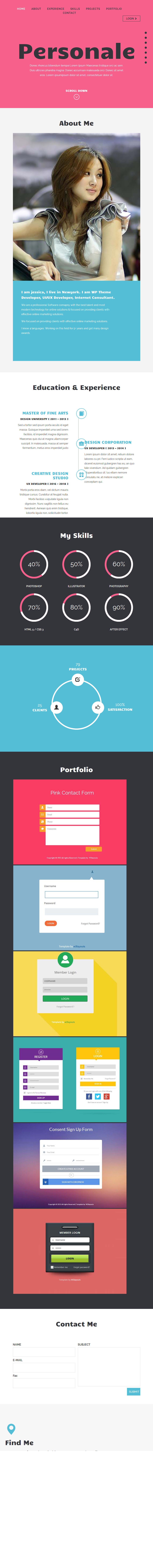 个人网站响应式静态网页模板,所有内容都放在一个页面(似乎,老外就喜欢这么干),点击导航,滑动到对应的位置。“My Skills”这里,用圆形统计图表动态展示了个人的技能的熟练程度,比较不错。点击图片,会显示图片相册。下面是摘自模板的一段内容: