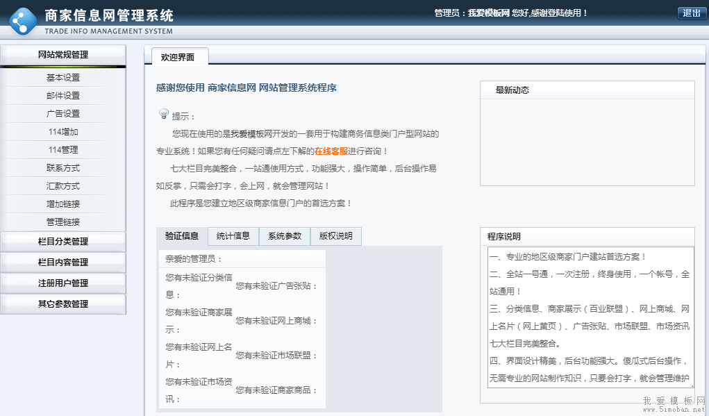 商家信息管理系统html模板 来源:未知 作者: 语言:中文简体 编码:utf-8 颜色:蓝色 大小: 0KB 点击次数: 发布时间:2018-09-03 10:32:57 去下载 去预览 蓝色商家信息管理系统html模板,包含主界面和frames组成的主界面,登录界面为左右栏风格,左边为logo和简介、联系方式,右边是登录框,顶部是渐变条,底部是深蓝色背景,设计简约大气。主界面和常规的系统界面差不多,都是顶部+左侧+右侧的风格,由frame框架构成。 TAGS: html模板 下载 预览 上一篇: CloudSoft网站后台管理系统响应式模板 下一篇: AdminPanel网站后台管理系统HTML模板