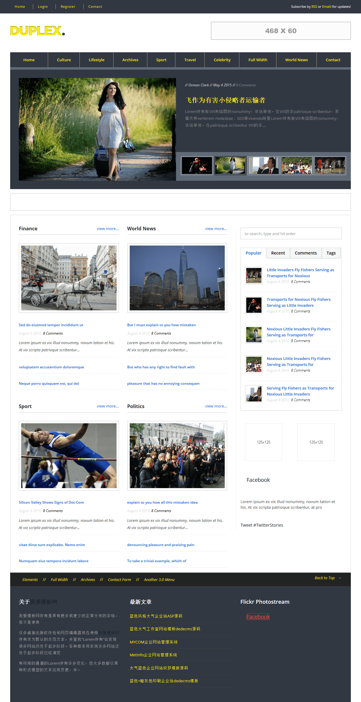 Duplex门户网站响应式html模板 来源:未知 作者: 语言:英文 编码:utf-8 颜色:灰色 大小: 2MB 点击次数: 发布时间:2017-06-15 17:24:20 去下载 去预览 基于bootstrap的Duplex门户网站响应式html模板,自适应pc、手机和平板端。广告位都占位好了,模板也非常全,甚至包括404页面。首页幻灯片采用了缩略图+大图+标题+文字描述,有利于SEO。栏目分为旅游、运动、艺术等等各个方面。 TAGS: Duplex 门户网站 响应 式 html 模板 基于 bootstrap 下载 预览 上一篇: 新闻门户网站css静态模板 下一篇: 黑色响应式门户网站html模板