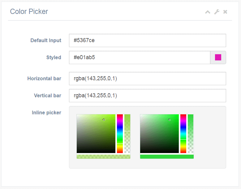 这个是Color Picker插件,和ps的取色器差不多,它还将取色的不同类型的值都显示在input框。再比如下面的图片: