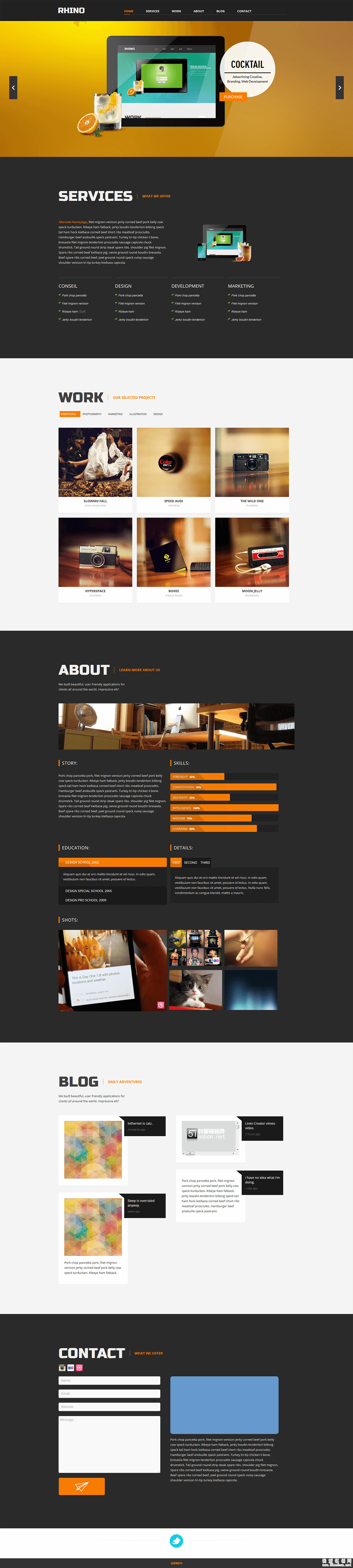 我爱模板网推荐:非常漂亮的摄影网站单页html模板,网站扁平化设计,并且支持两种色调和四种主体风格,下载下来后,双击打开alternate.html可以在左上角看到风格切换按钮。