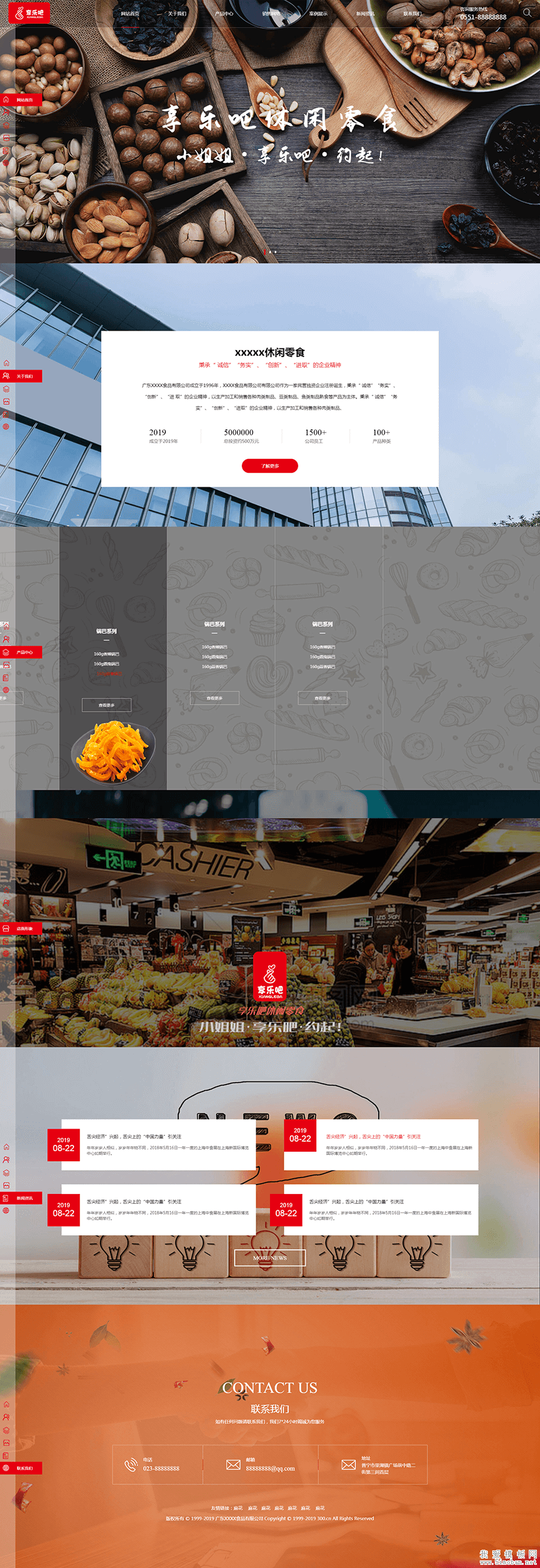 非常优质精美的餐饮公司官网html模板,首页基于fullPage的全屏切换,导航采用透明效果,“盖在”精美的banner上面,有个性的是左侧侧边栏是随滚动条滚动的竖行快捷导航,到滚动到对应位置,竖行菜单会动画改编当前焦点。首页的产品中心做的也非常不做,背景是各种美食卡通,上面是各种竖排的产品,而且响应鼠标的位置,鼠标浮动上去,会显示产品图片(图片抠图很仔细,选材也很有“口感”)。新闻资讯也是手写+卡通的news+问号作为背景,上面是时间+文字的混排,鼠标放上去时间自动上浮同时文字下沉的动画效果。每一屏都有自己的背景。其他页面也有非常多的特效,效果也都还不错,总之是一款很不错的html模板,我爱模板网在这里免费奉上!