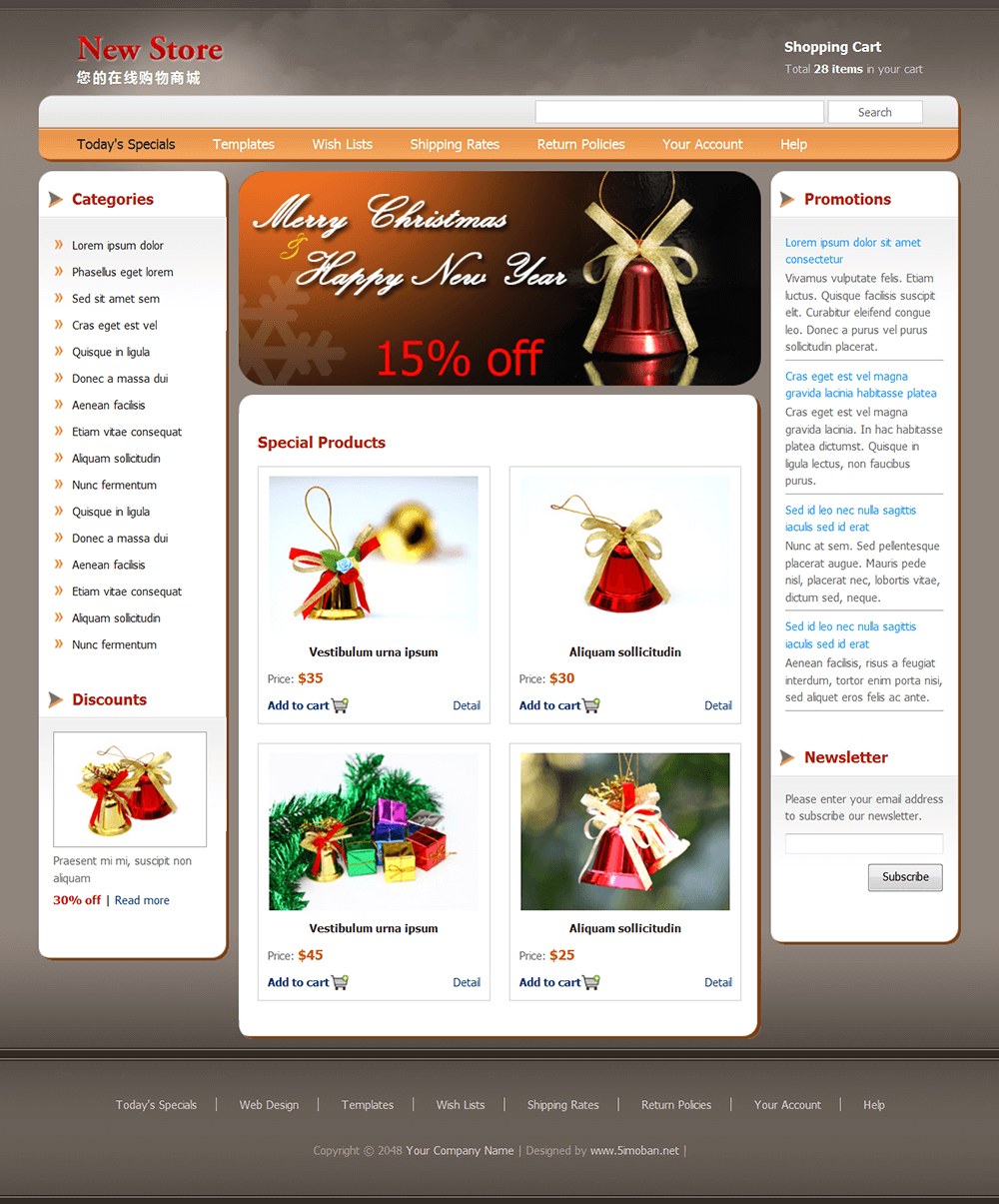 礼物商城静态网页模板 来源:未知 作者: 语言:英文 编码:utf-8 颜色:褐色 大小: 0KB 点击次数: 发布时间:2017-06-15 17:06:57 去下载 去预览 国外褐色天空背景,三栏布局风格的新年和圣诞节礼物特卖商城静态网页模板,不过只包含首页和文章页两个页面。 TAGS: 礼物商城静态模板 下载 预览 上一篇: 婚礼商城响应式模板 下一篇: 汽车配件商城css模板