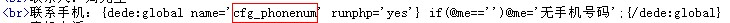 {dede:global name='cfg_phonenum' runphp='yes'} if(@me=='')@me='无手机号码';{/dede:global}