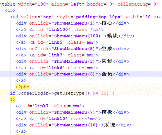 看到这个界面,应该懂html的都会了,所有后台的主菜单全在这里,你不需要哪个菜单项,就把对应的删掉就可以了,比如说不需要会员功能了,就删除
