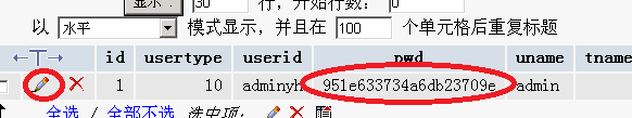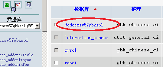 3、点击数据库,找到dede_admin这个表,点击打开,可以看到密码,不过这个密码是经过MD5加密的: