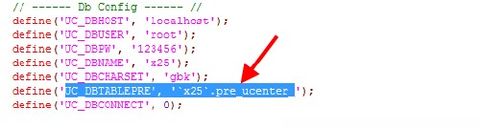 5、检查配置文件中的表前缀是否填写正确,位置在./config/config_ucenter.php 中: