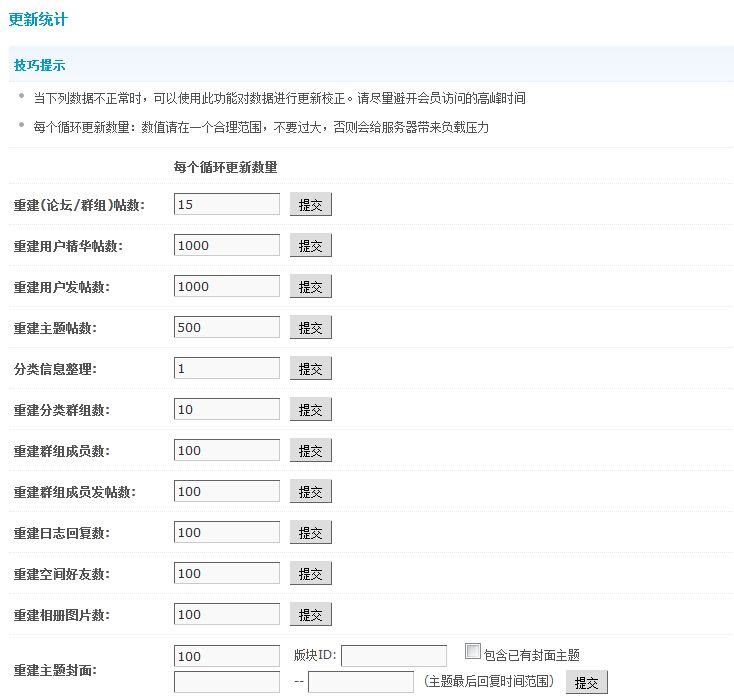 友情提示:在“重建”之前,需要设置文件夹./data/forum/attachment/threadcover 及其子文件夹和文件全部为可改写 0777