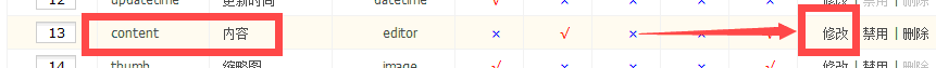 第四步:点开“字段管理”后,找到希望应用内链的字段,例如“内容”,选择修改: