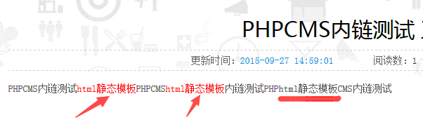 第六步:修改好上面的设置后,在刚才的模型对应的栏目里面添加一篇测试文章,我在文章内容里面一共随机位置输入了三次“html静态模板”,打开前台查看效果如下: