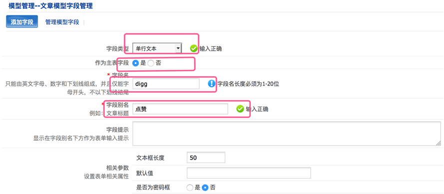 如果开启自定义字段我们需要在对应的模型中加入digg字段,下面教大家怎么加入字段;