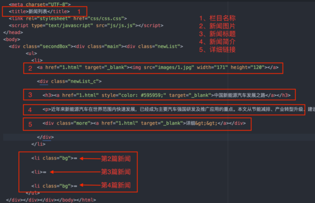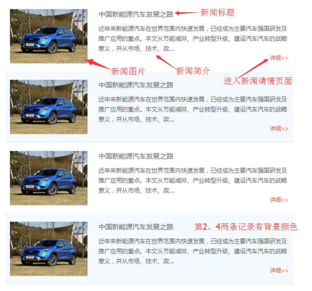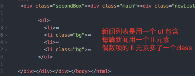 上图所示代码会有一个问题,那就是没有实现第2、4这样的偶数项新闻的背景色问题,所以还需要这样改进一下代码: