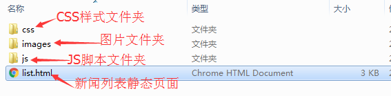 直接用浏览器打开新闻列表静态页面list.html,看到效果如下图: