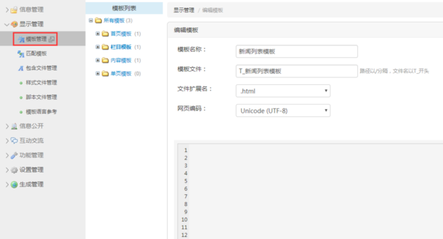 第二步就是在SiteServer CMS后台创建一个空白的名叫“新闻列表模板”的栏目模板,如下图所示: