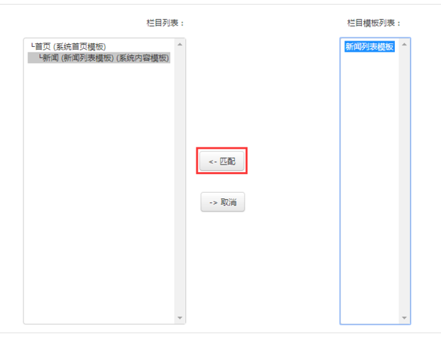 模板嵌套完成之后,需要把此模板应用的具体栏目中,就是所谓的模板匹配,如下图所示: