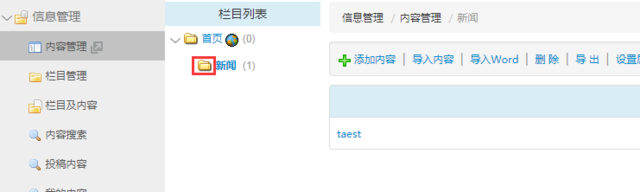 生成完成之后,再通过如下图所示点击红框位置文件夹图标,就可进到 “新闻” 栏目对应的前台页面: