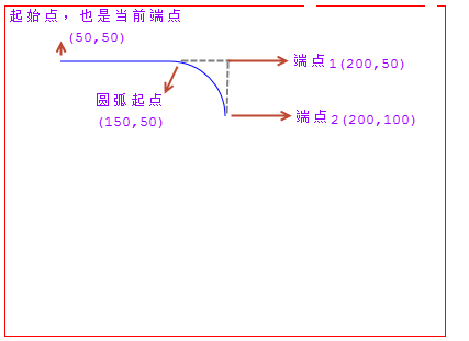 //此时,坐标点(50,50)就是绘制弧线时的当前端点