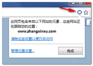 如果是Chrome浏览器的话直接点击地址栏右边长得像轮船方向盘一样的小图标就会看到可以取消地理位置的小框框了: