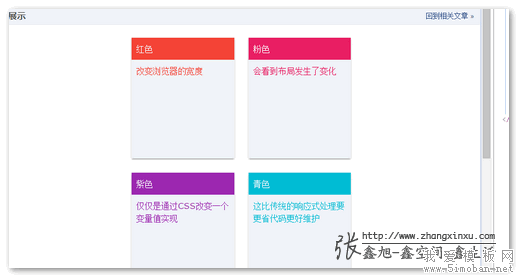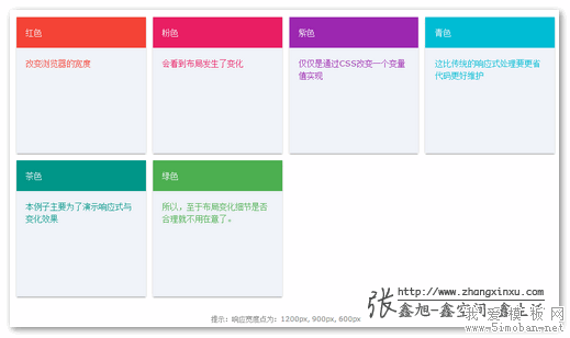 对于复杂布局,CSS变量的这种相互传递和直接引用特性可以简化我们的代码和实现成本,尤其和动态布局在一起的时候,无论是CSS的响应式后者是JS驱动的布局变化。我们来看一个CSS变量与响应式布局的例子,您可以狠狠地点击这里:CSS变量与响应式布局实例demo