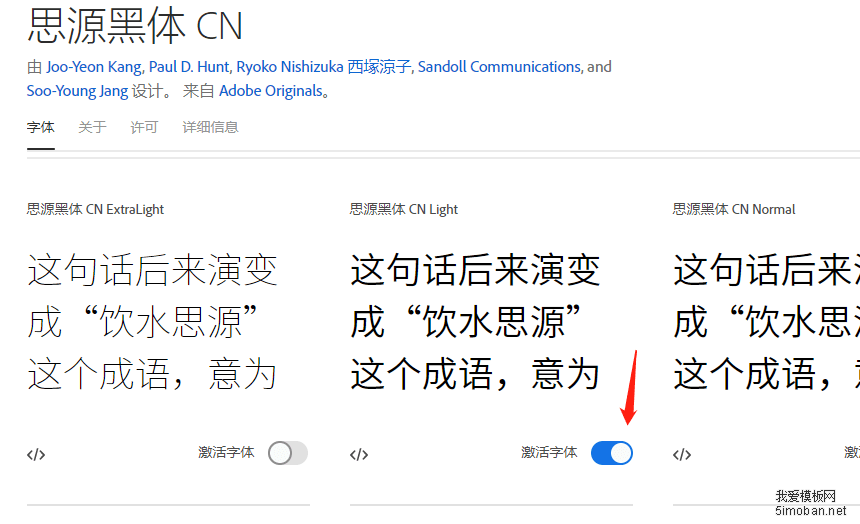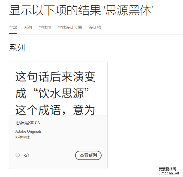 4、点击上图中的“查看系列”按钮,可以查看所有的思源黑体,点击“激活字体”就能使用此字体: