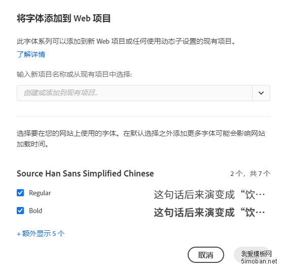 这里面的字体,有的太有“书法”气息,不适合网站正文使用,有的又和微软雅黑偏差比较大,项目已经进行到后期,如果换个偏差比较大的字体,会造成比较大的偏差。思前想后,使用了比较常见的“思源黑体”。于是,下载思源黑体,得到的字体包太大,十几M,中文字体的通病。还好有Adobe Fonts。