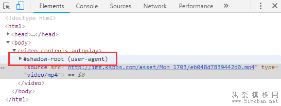 3、这时您就能看到video标签里面多了一个“#shadow-root(user-agent)”,如下