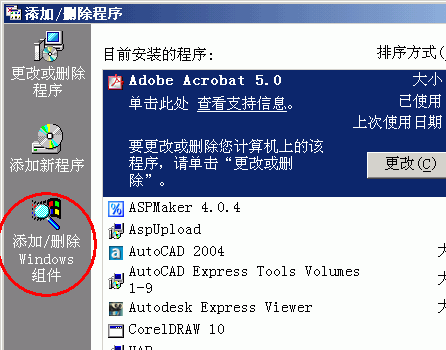 3、单击“添加/删除Windows组件”,打开添加/删除Windows组件对话框: