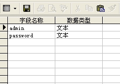 再来创建一个储存管理员用户的表,以同样的方法,不过起名为admin,设计如下表: