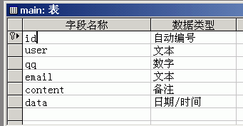 | data | 日期/时间 | 留言时间,设定默认值为Now() |