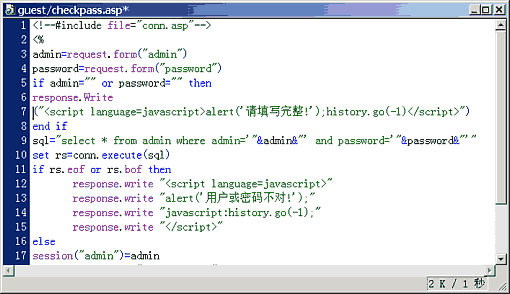 下面就做检测密码的ASP程序了,看以下代码解释: