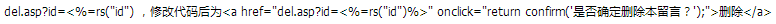 上节我们增加了一个删除留言的链接,以下是这个del.asp的代码