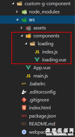 // 其中'./components/loading/index' 的 /index 可以不写,webpack会自动找到并加载 index 。如果是其他的名字就需要写上。 import Loading from './components/loading/index' // 这时需要 use(Loading),如果不写 Vue.use()的话,浏览器会报错,大家可以试一下 Vue.use(Loading)5.在App.vue里面写入定义好的组件标签 <Loading></Loading>
