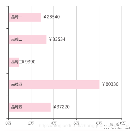 3.横向柱状图的显示在配置xAxis和yAxis的时候,第一个参数就是type,这个参数用于说明该轴的类型,当x的type为value,y的type为category的时候,柱状图就会显示成横向柱状图。